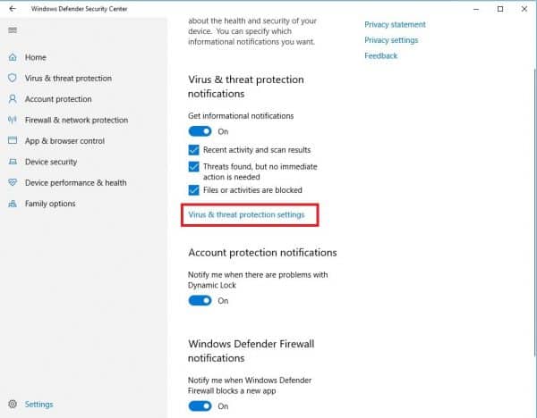 Bước 2: Click chọn Virus & threat protection settings.