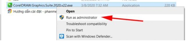 Bước 1: Mở thư mục giải nén, Tìm tới file CorelDrawGraphicsSuite2020.exe