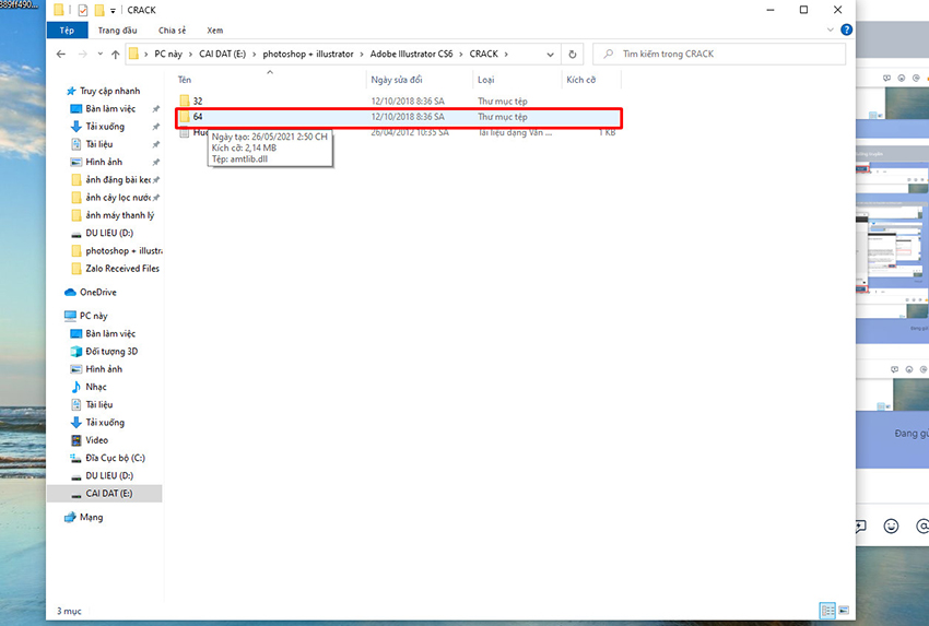 Vào thư mục/64 copy file Amtlib.dll paste vào ổ C:Program Files Adobe Adobe IIIustrator CS6(64Bit) Support Files Contents Windows.