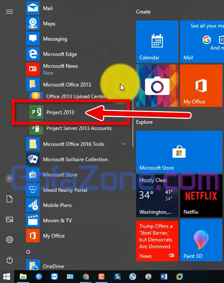 Mở phần mềm Project 2013 lên. Bạn có thể tìm thấy icon phần mềm ở menu Start.