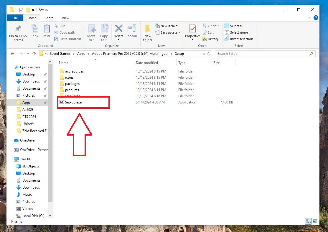 Bước 4: Mở thư mục “Setup” và khởi động tệp “setup.exe” như hình dưới.