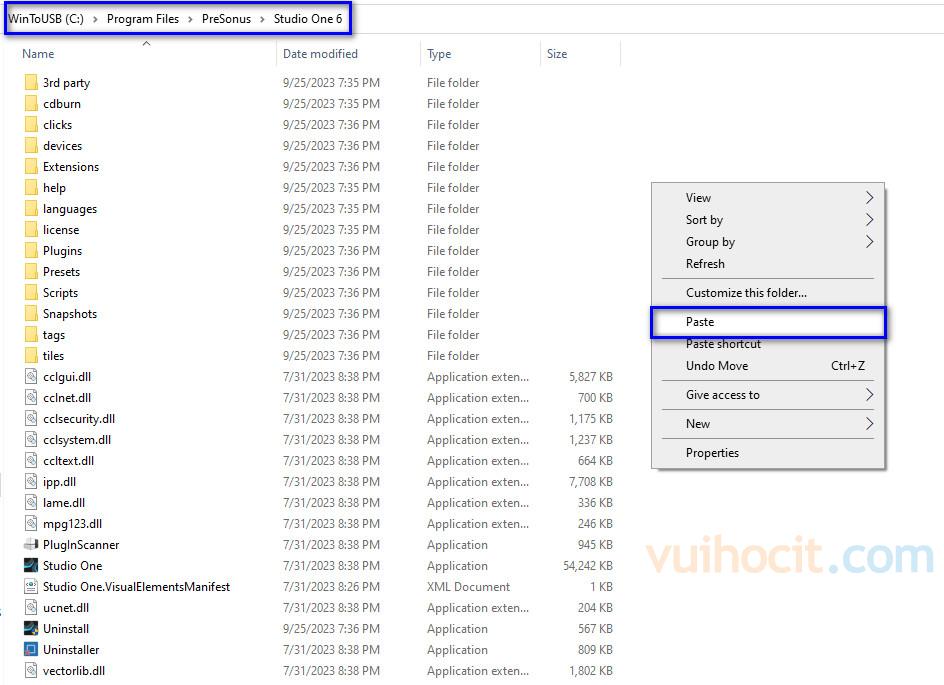Đến C:Program FilesPreSonusStudio One 6
