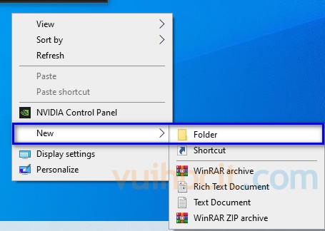 Ra màn hình chính > click chuột phải vào khoảng trống và tạo thư mục mới như ảnh dưới