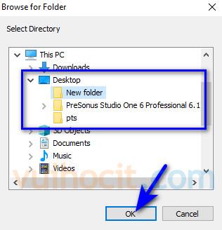Chọn Desktop > chọn thư mục vừa tạo lúc nãy và click OK